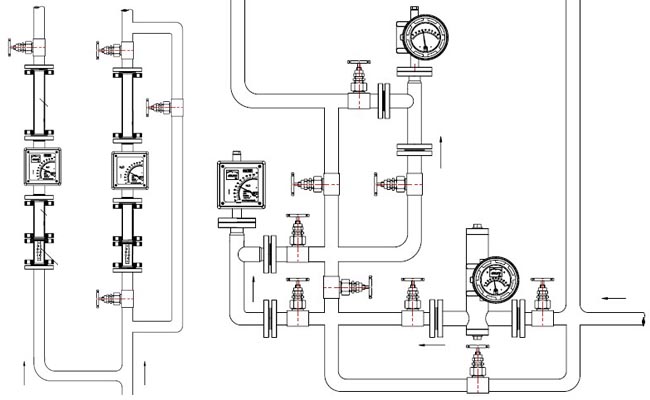 五、金屬管浮子流量計(jì)安裝示意圖: