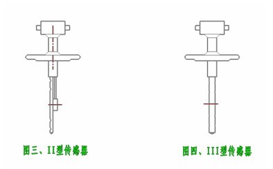 3.2.1、Ⅰ型,適用于(20~50)㎜的管道,外形如圖2所示。其檢測桿直徑一般為4.5~6.5㎜,傳感器與管道的連接方式有兩種:一種是螺紋連接,另一種是法蘭連接。用于高壓測量時(shí)都采用法蘭連接,如下圖所示
