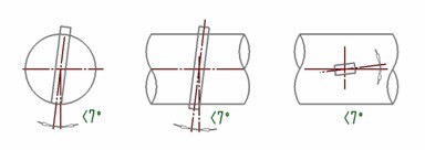 其他類型的傳感器是將其檢測桿插入工藝管道中,安裝時(shí)除了總壓孔應(yīng)正對流速方向外,須保證傳感器檢測桿與工藝管道的軸線垂直,其允許的位置角壓偏差如圖五所示。